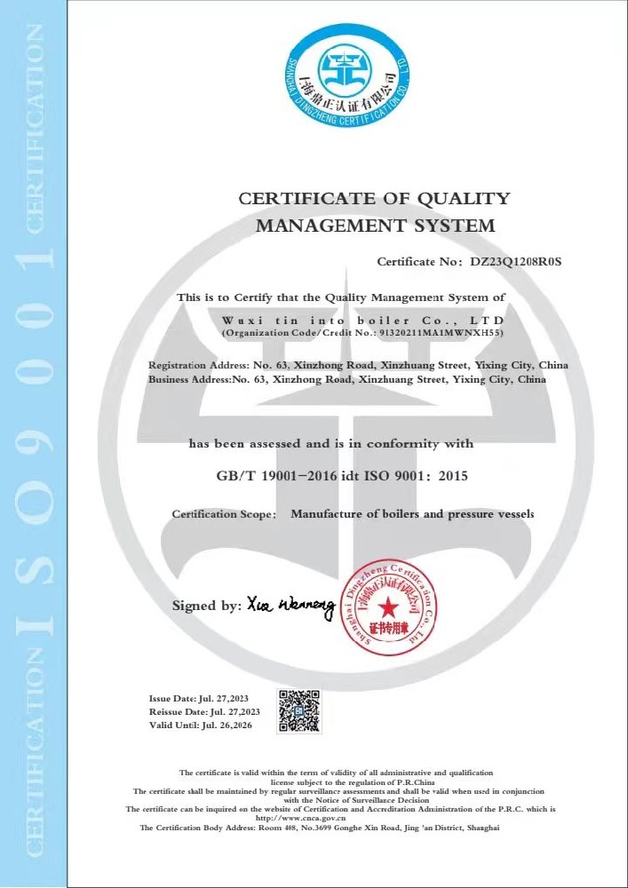 公司现拥有国际同步的技术研发力量,具有B级锅炉,D级(D1D2)压力容器制造资质,率先通过ISO9000国际质量体系认证